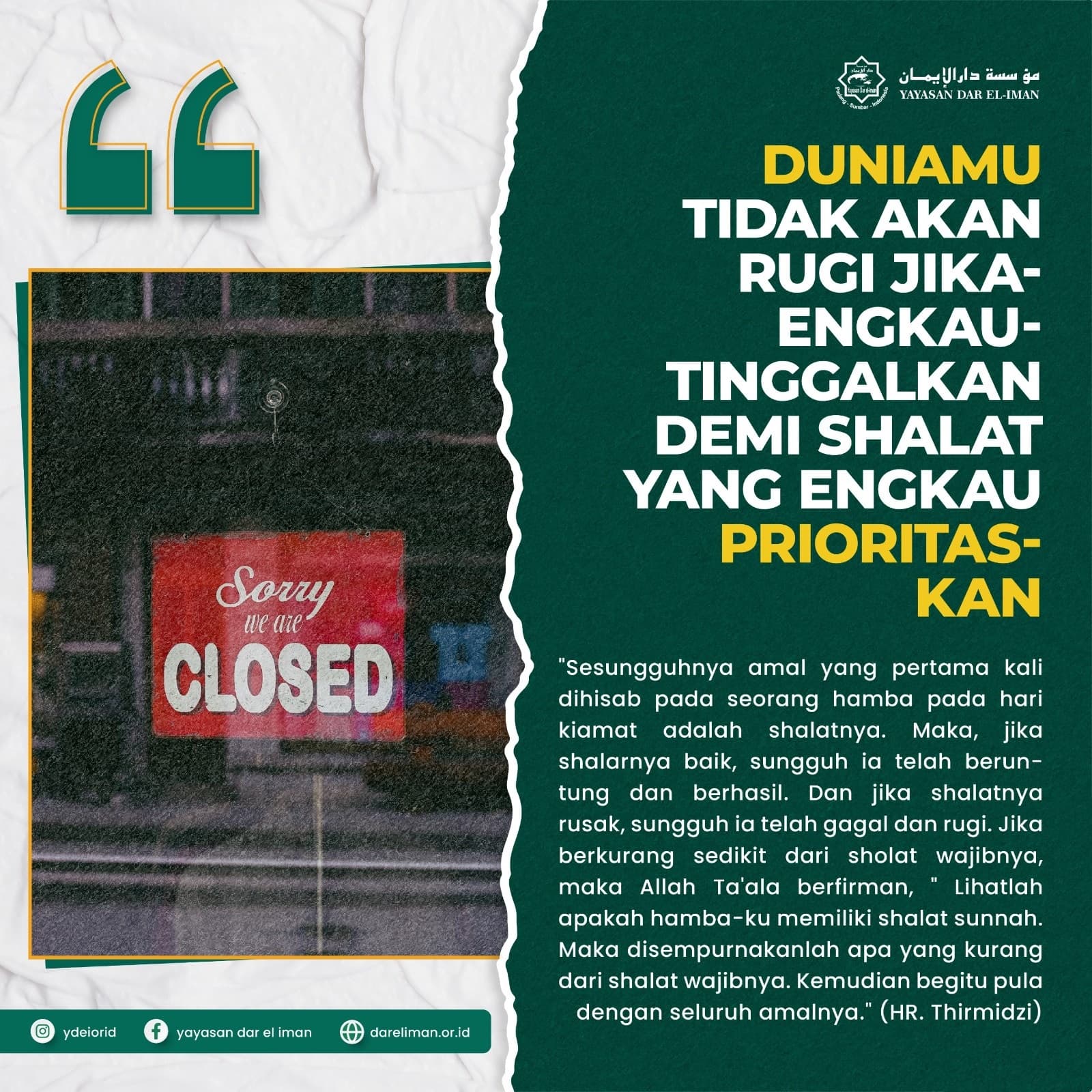 Kenalilah dirimu, wahai hamba Allah. Waspadalah! Janganlah engkau menemui Allah, sedangkan engkau tidak memiliki bagian dalam Islam. Kadar Islam dalam hatimu, sesuai dengan kadar shalat dalam hatimu.βLihat Ash Sholah, hal. 12.