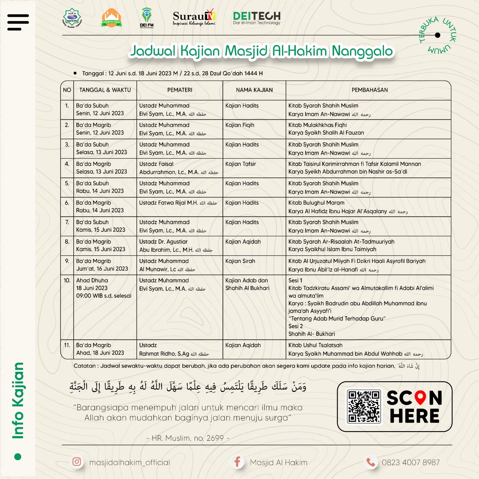 Masjid Al-Hakim Nanggalo Lapai Padang Sumatera Barat12 Juni s.d. 18 Juni 2023 M / 22 s.d. 28 Dzul Qo’dah 1444 H