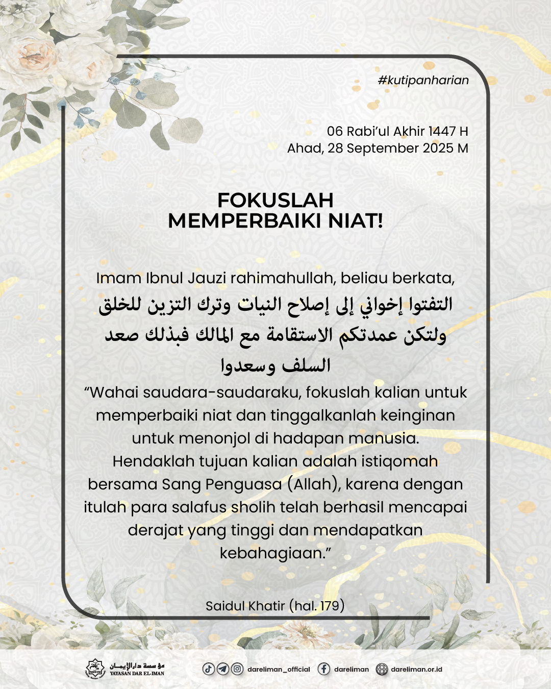 Kutipan Harian, Edisi: Ahad, 06 Rabi’ul Akhir 1447 H / 28 September 2025 M