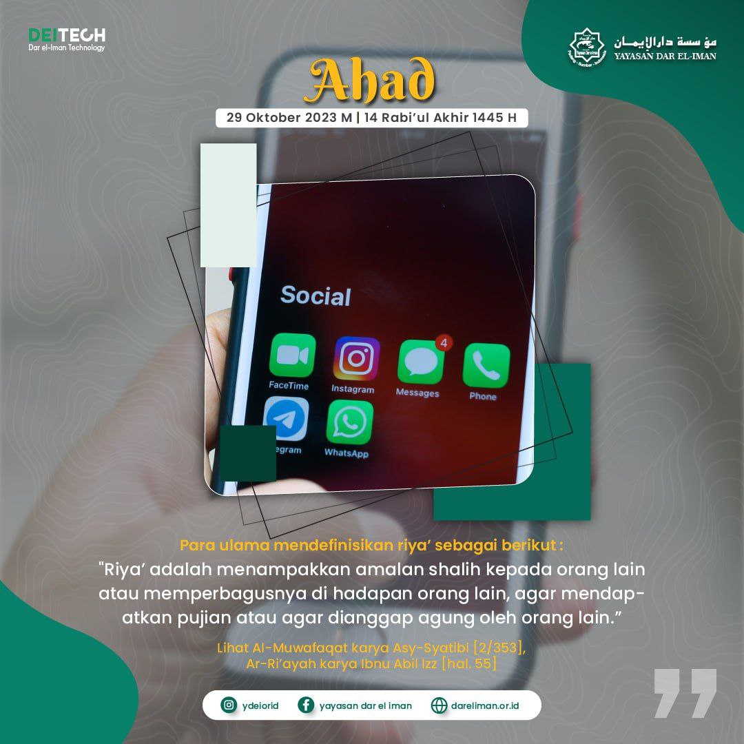 Dalam beribadah, terkadang muncul perasaan ingin dipuji orang lain. Apalagi ibadah tersebut dilakukan di tempat umum yang banyak dilihat orang lain. Memang pujian manusia terdengar manis di telinga, tetapi hal ini dapat membawa kerugian bagi kita semua. Hal ini merupakanย riyaโ yang tersembunyi pada hati. Apa ituย riyaโ? Dan apa saja bahayanya? Mari simak penjelasan singkat mengenaiย riyaโ berikut ini.