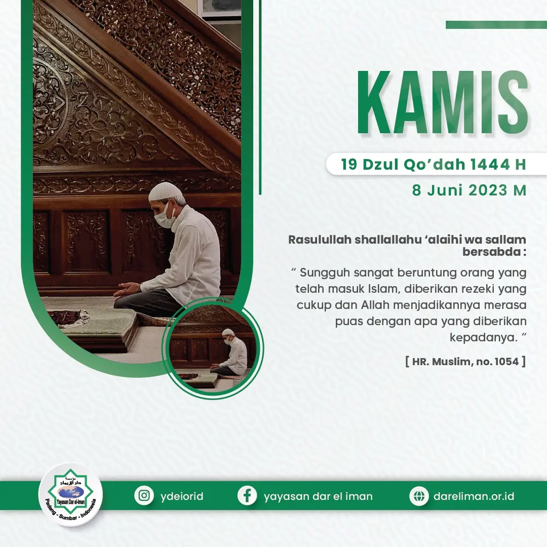 โ€œ Sungguh sangat beruntung orang yang telah masuk Islam, diberikan rezeki yang cukup dan Allah menjadikannya merasa puas dengan apa yang diberikan kepadanya. โ€
