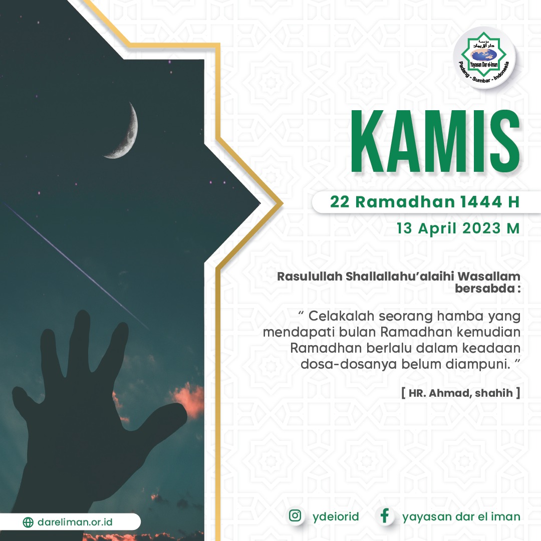 โ€œCelakalah seorang hamba yang mendapati bulan Ramadhan kemudian Ramadhan berlalu dalam keadaan dosa-dosanya belum diampuni.โ€