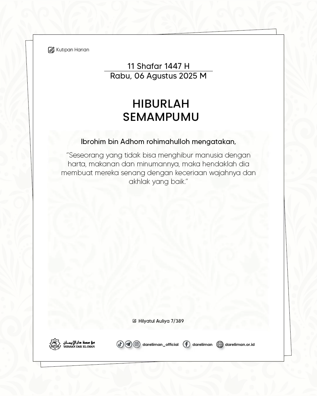 โSeseorang yang tidak bisa menghibur manusia dengan harta, makanan dan minumannya, maka hendaklah dia membuat mereka senang dengan keceriaan wajahnya dan akhlak yang baik.โ