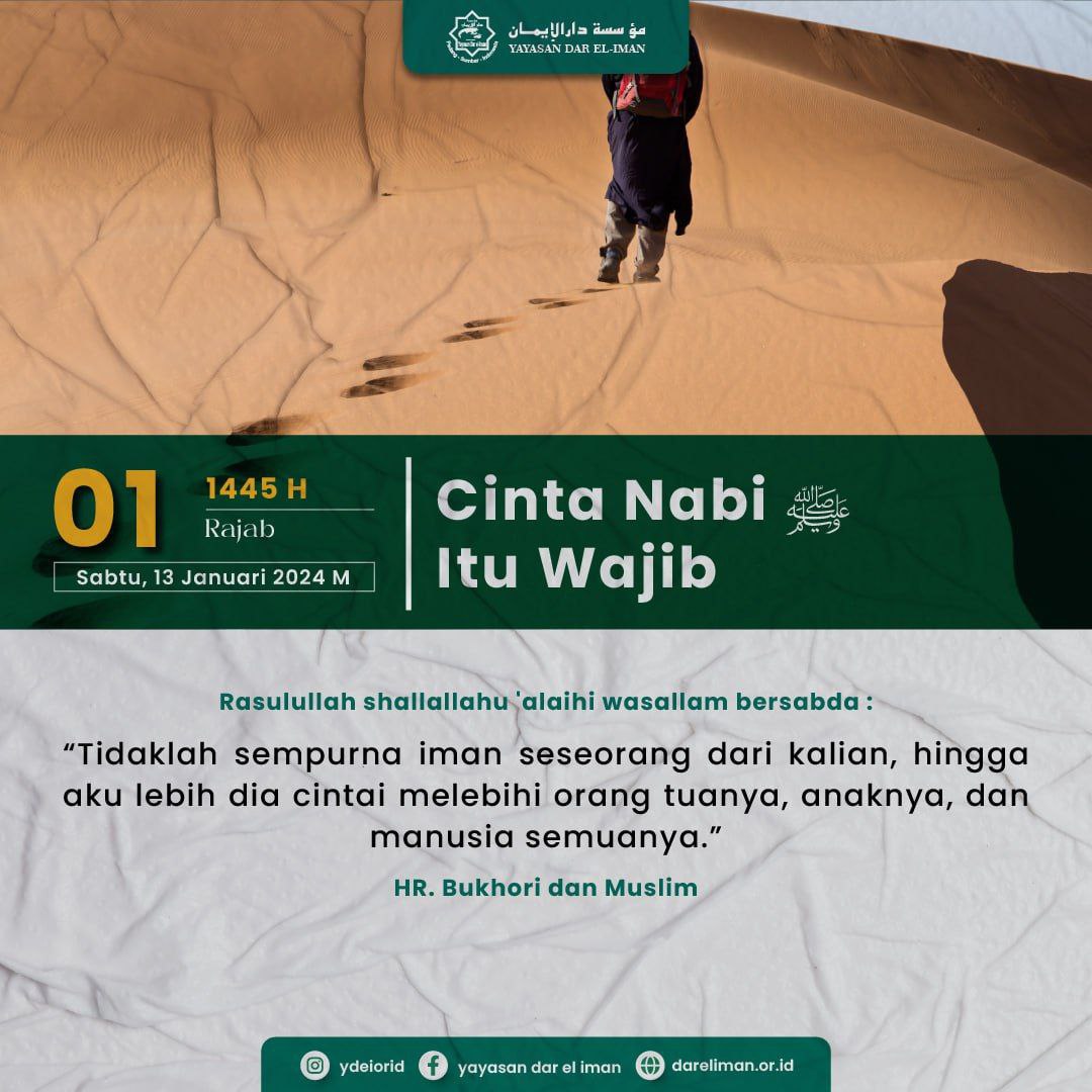 “Tidaklah sempurna iman seseorang dari kalian, hingga aku lebih dia cintai melebihi orang tuanya, anaknya, dan manusia semuanya.”