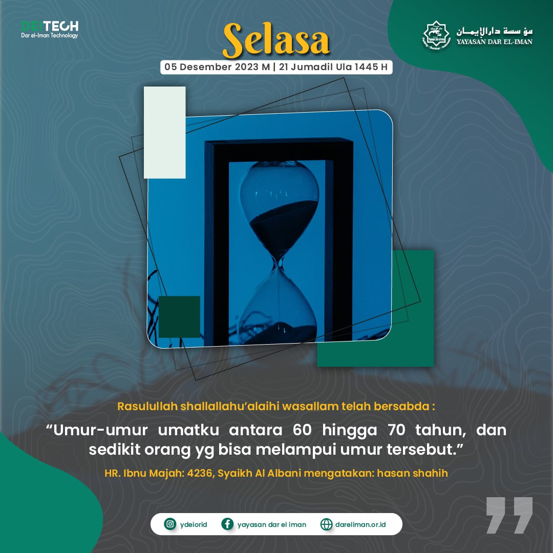 โHai orang-orang yang beriman, bertakwalah kepada Allah dan hendaklah setiap diri memperhatikan apa yang telah diperbuatnya untuk hari esok (akhirat), dan bertakwalah kepada Allah, sesungguhnya Allah Maha Mengetahui apa yang kamu kerjakanโ. (QS. Al-Hasyr: 18).