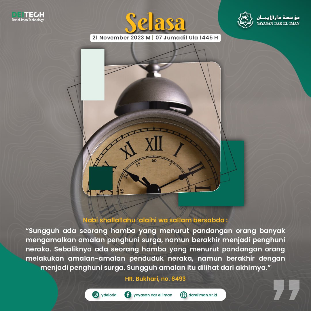โSesungguhnya setiap amalan tergantung pada akhirnya.โ (HR. Bukhari, no. 6607)