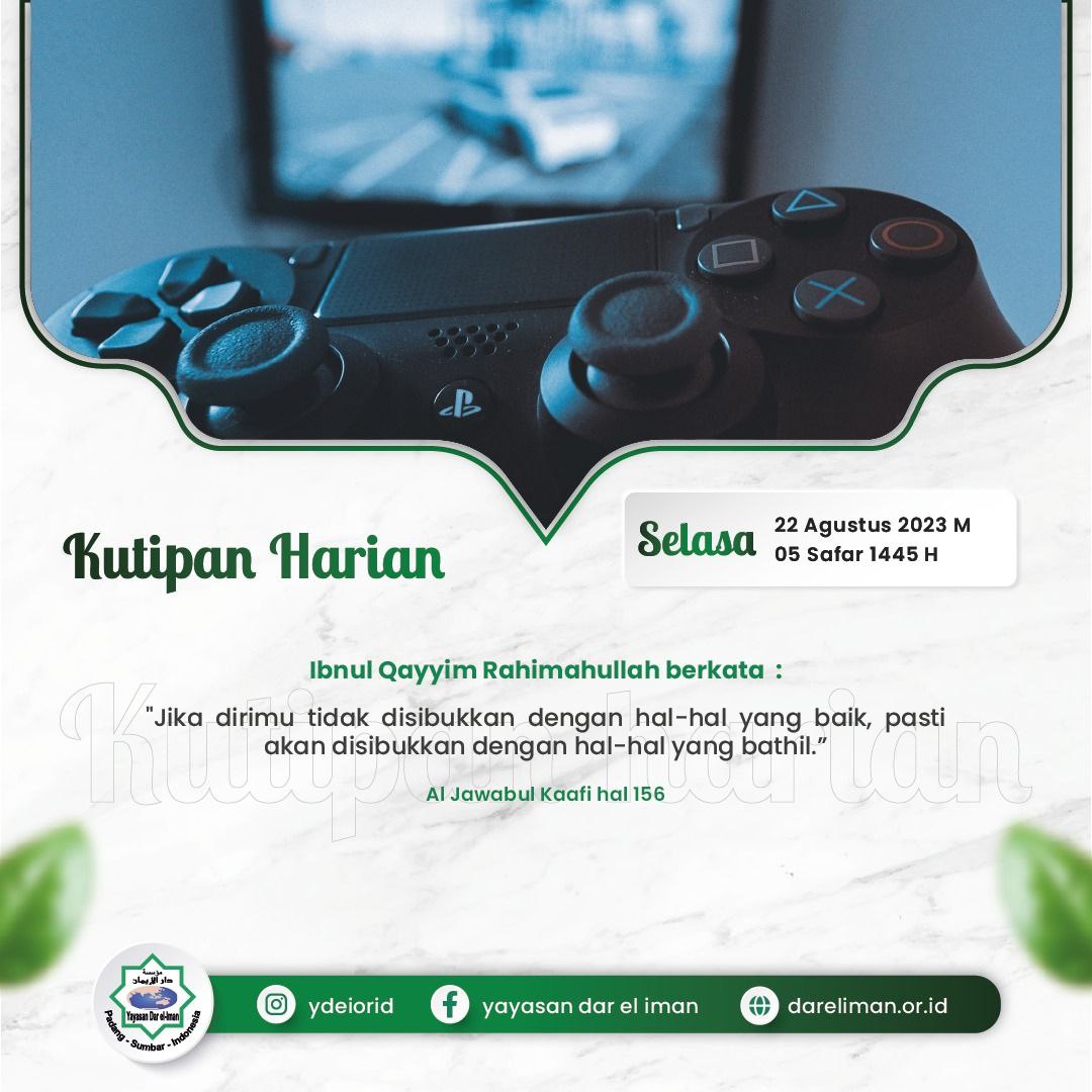 “Jika dirimu tidak disibukkan dengan hal-hal yang baik, pasti akan disibukkan dengan hal-hal yang bathil.”