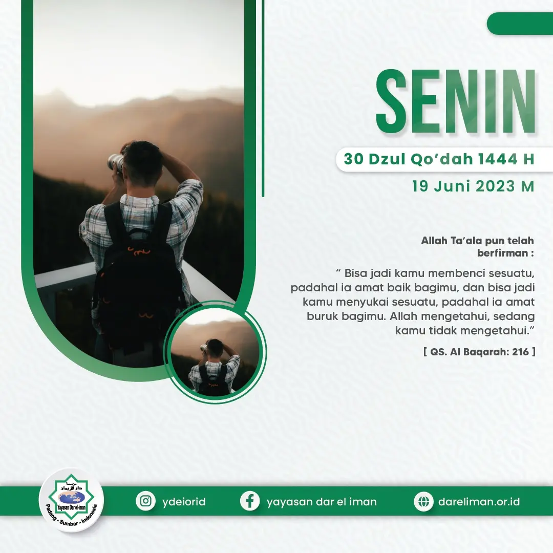 โBisa jadi kamu membenci sesuatu, padahal ia amat baik bagimu, dan bisa jadi kamu menyukai sesuatu, padahal ia amat buruk bagimu. Allah mengetahui, sedang kamu tidak mengetahui.โ