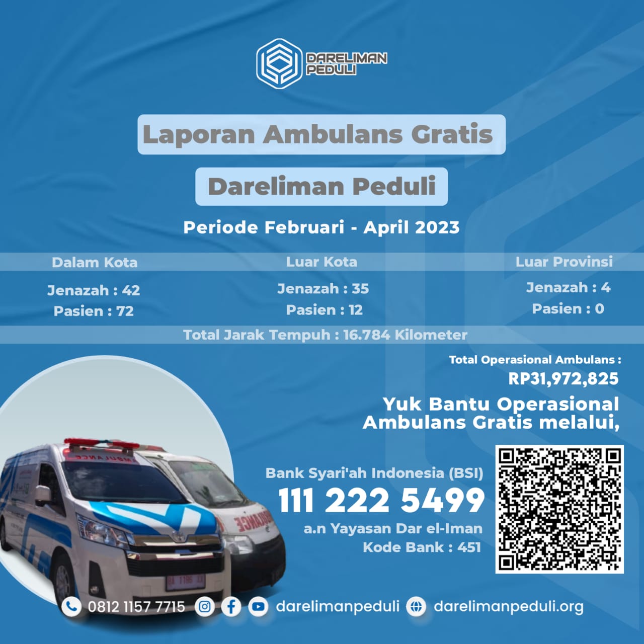 Laporan Ambulans Gratis Dareliman Peduli: Februari – April 2023
