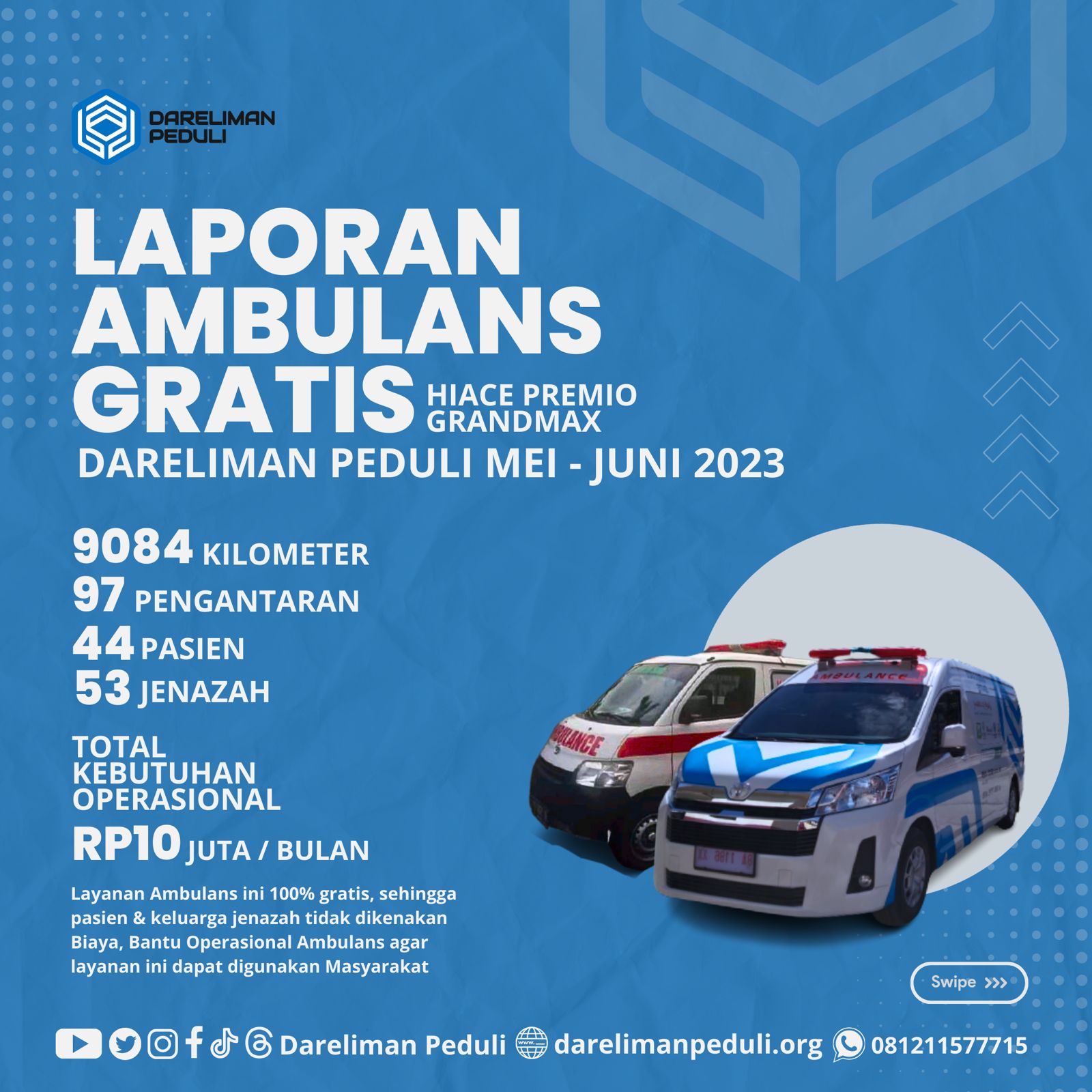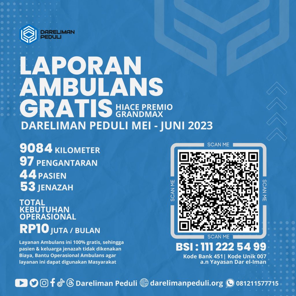 Laporan Ambulans Gratis Hiace Premio Grandmax – Dareliman Peduli Mei s.d. Juni 2023