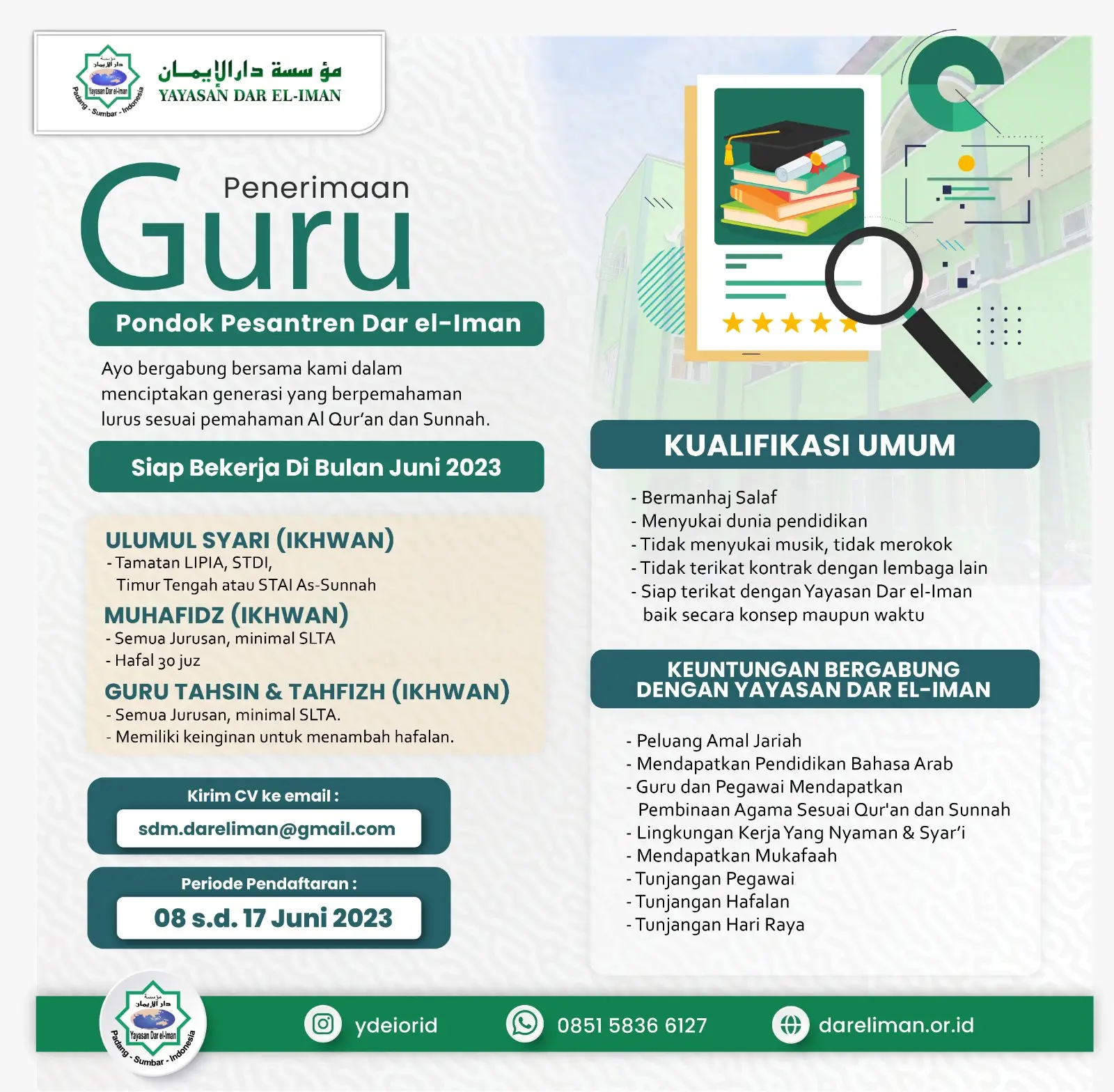 🔖Siap terikat dengan Yayasan Dar el-Iman baik secara konsep maupun waktu