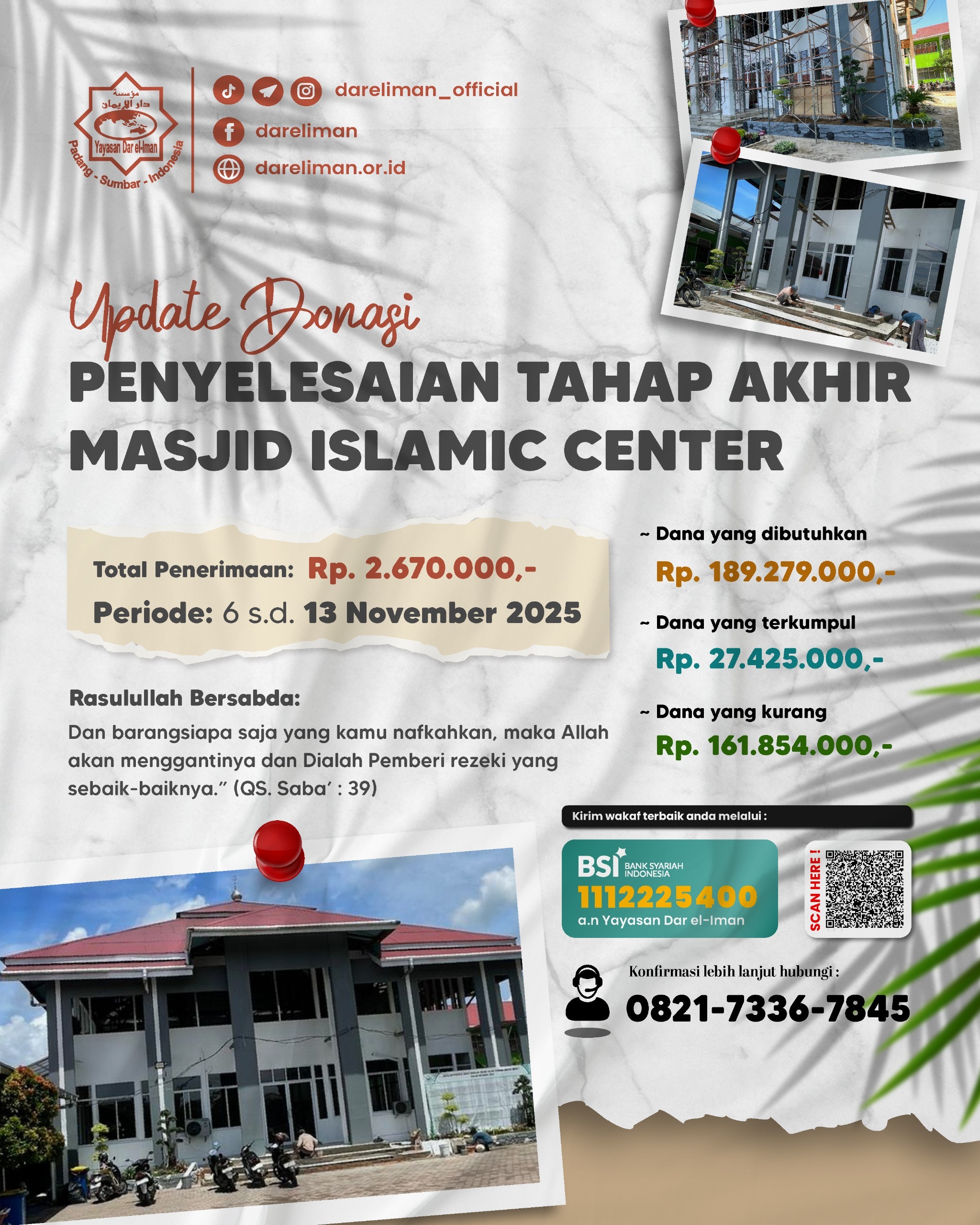๐จ๐ฃ๐๐๐ง๐ ๐๐ข๐ก๐๐ฆ๐ ๐ฃ๐๐ก๐ฌ๐๐๐๐ฆ๐๐๐๐ก ๐ ๐๐ฆ๐๐๐ ๐๐ฆ๐๐๐ ๐๐ ๐๐๐ก๐ง๐๐ฅ ๐๐๐ฅ ๐๐-๐๐ ๐๐ก – Dana yang dibutuhkan Rp 189.279.000,- – Penerimaan donasi 06 November s.d. 13 November 2025 Rp 2.670.000,- – Total donasi yang sudah diterima Rp 27.425.000,- (persentase terkumpul 15%) – Sisa kebutuhan Rp 161.854.000,-