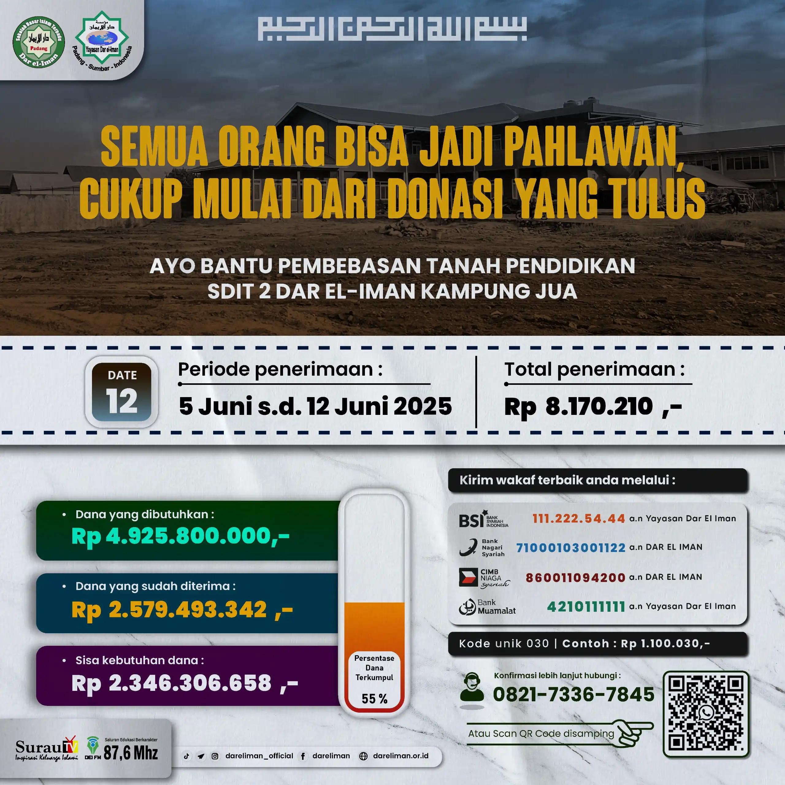 Update Donasi Wakaf Tanah Pendidikan SDIT 2 Dar el-Iman Kampung Jua – 12 Juni 2025